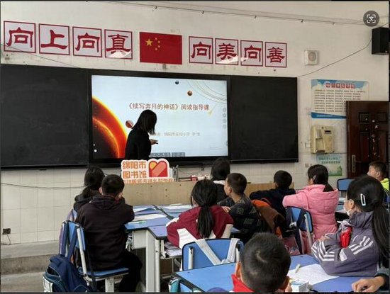 绵阳新闻网讯 为了深化全民阅读推广,搭建馆校合作育人桥梁,激发学生对传统文化与科幻文学的阅读兴趣,近日,绵阳市图书馆专业阅读指导老师走进游仙区建华小学,为同学们开展了以“续写奔月神话,点亮阅读之灯”为主题的《续写奔月的神话》阅读指导课活动,让经典神话与创意阅读碰撞出别样火花。